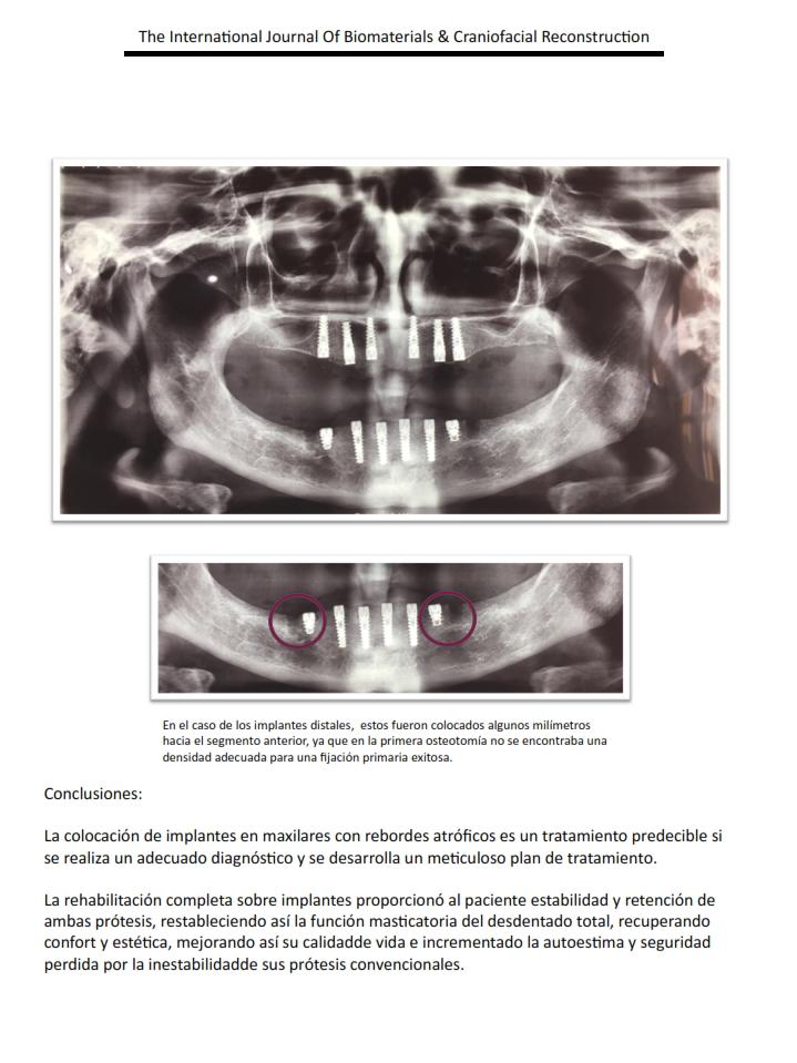 Discussion: The choice of this treatment was the result of the lack of stability that has a lower total prosthesis when a small bone ridge and the patient need to have a fixed prosthesis in the mouth.