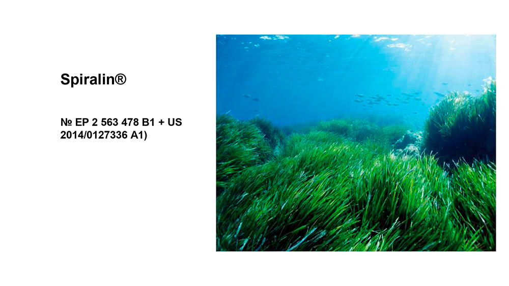 תמצית פעילה העשויה מאצות ספירולינה, פיתוח מדעני של חברת Ocean Pharma, בשיתוף עם אוניברסיטאות בגרמניה. אצת הספירולינה היא אחת ממיני האורגניזמים העתיקים ביותר על פני כדור הארץ- והיא מפתחת מנגנון התנגדות לגורמים הפוגעים במראה העור והציפורניים.