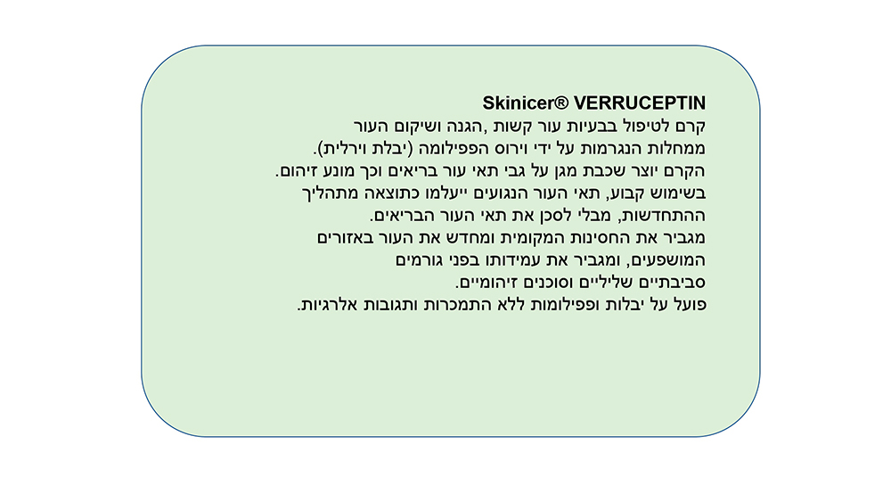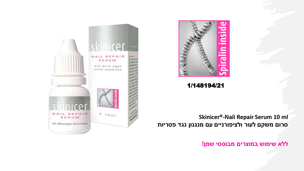 מוצרי Skinicer פותחו במיוחד להקלה וטיפול בפיטריות הציפורניים והעור. לטיפול בפסוריאזיס הקלה והסרה של יבלות. ליעילות מקסימלית המבוססת על הספקטרום הטיפולי הרחב של Skinicer. המוצרים כוללים משחה לטיפול ביתי בפיטריות העור והציפורניים, קרם למניעת יבלות העור ופסוראזיס וכד.