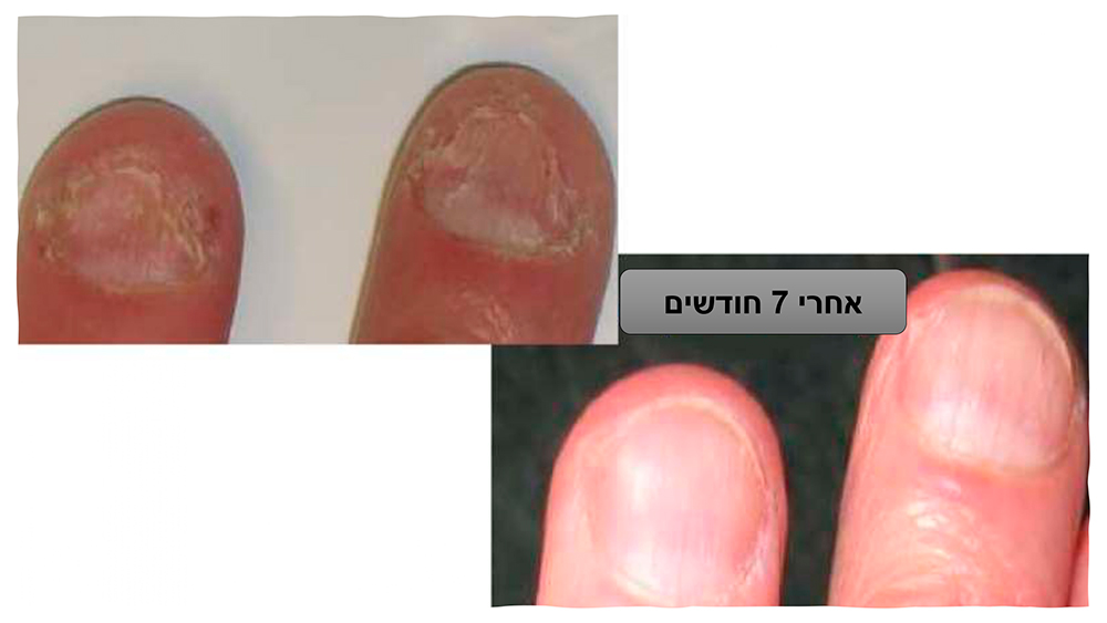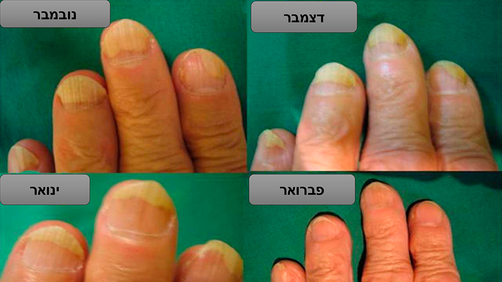 - עיבוי הציפורניים ושינוי הצורה שלהן.