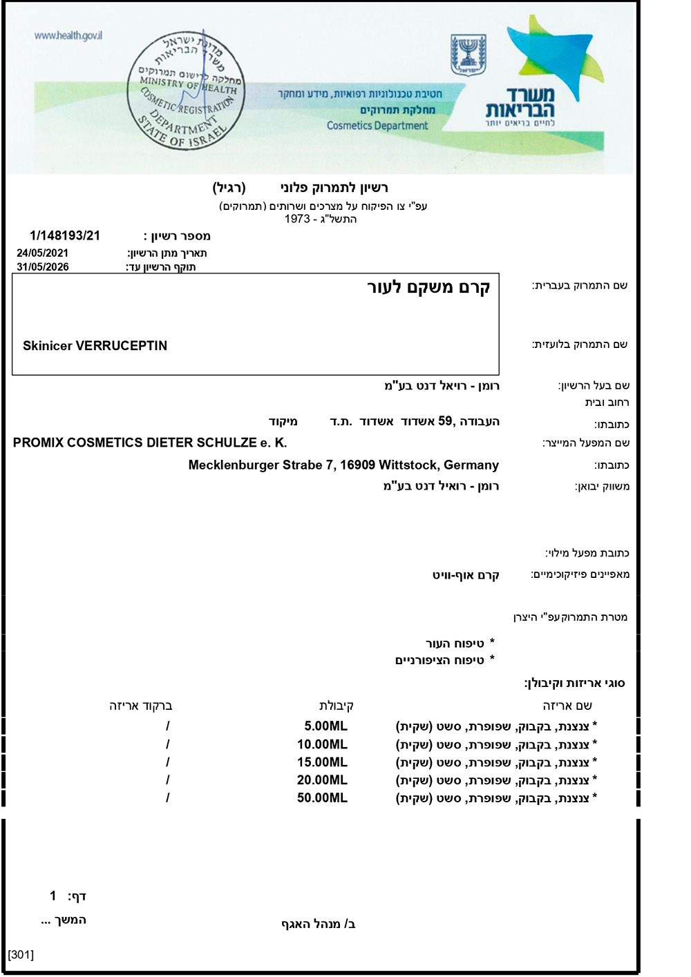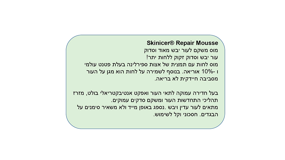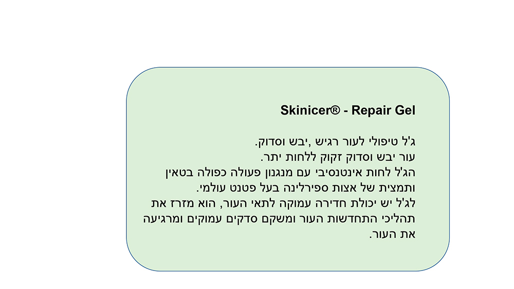 תכשירי Skinicer אינם מכילים צבעים מלאכותיים, הורמונים וחומרים משמרים למינהם. כל המשחות והקרמים מתאימים מצוין לטיפול בפסוריאזיס מניעה של פיטריות הצפורניים והעור הקלה ביבלות וכו.