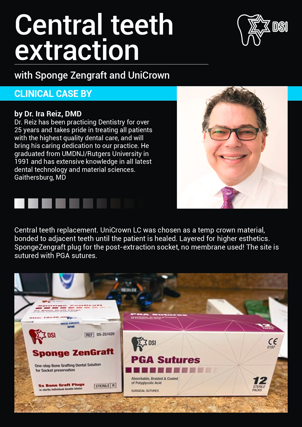 Dr Ira Reiz - central teeth extraction - DSI Sponge ZenGraft & UniCrown
