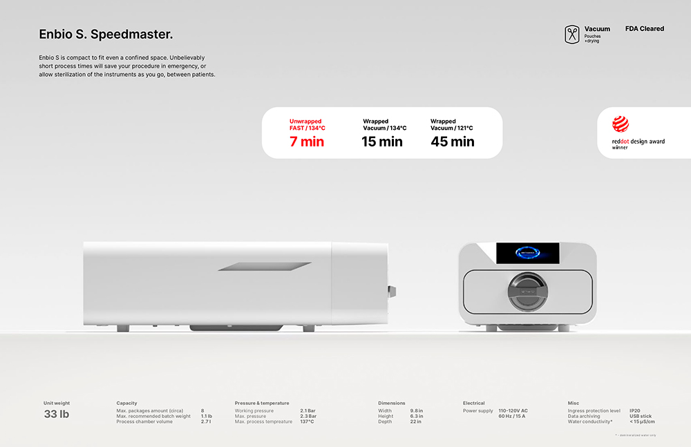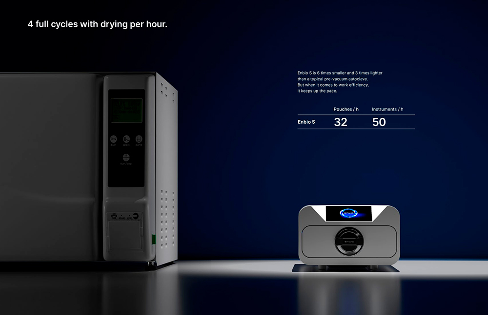 זהו כלי יחודי הנועד לתת את המענה האולטימטיבי לעיקור כלים. ENBIO קטן בהרבה מכל אוטוקלאב אחר בשוק, פי 6 קטן יותר ופי 3 קל יותר מכל אוטוקלאב אחר בעולם. מהיר יותר מכל אוטוקלאב אחר כולל יבוש (פי 4 מכל אוטוקלאב רגיל) ENBIO נחשב לאוטוקלאב הכי מהיר בעולם עם אופציית עיקור הכי מהירה של רק 7 דקות.